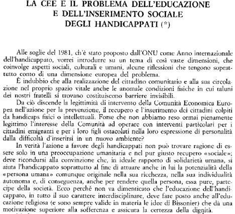 La CEE e il problema dell'educazione e dell'inserimento sociale degli Handicappati